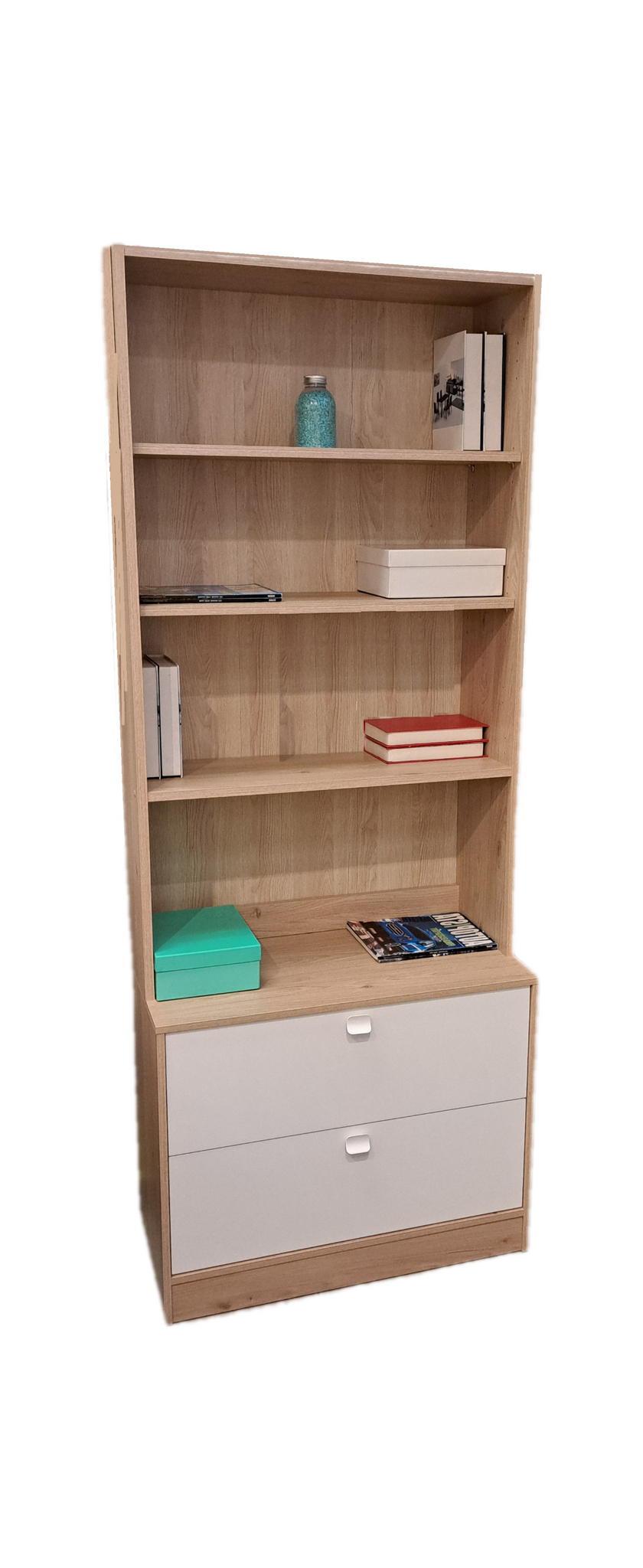 Mide 79cms ancho x 28cms/40cm profundidad x 198cms alto. MDF laminado color oak/blanco. Fabricado en Francia. Entrepaños de altura ajustable.